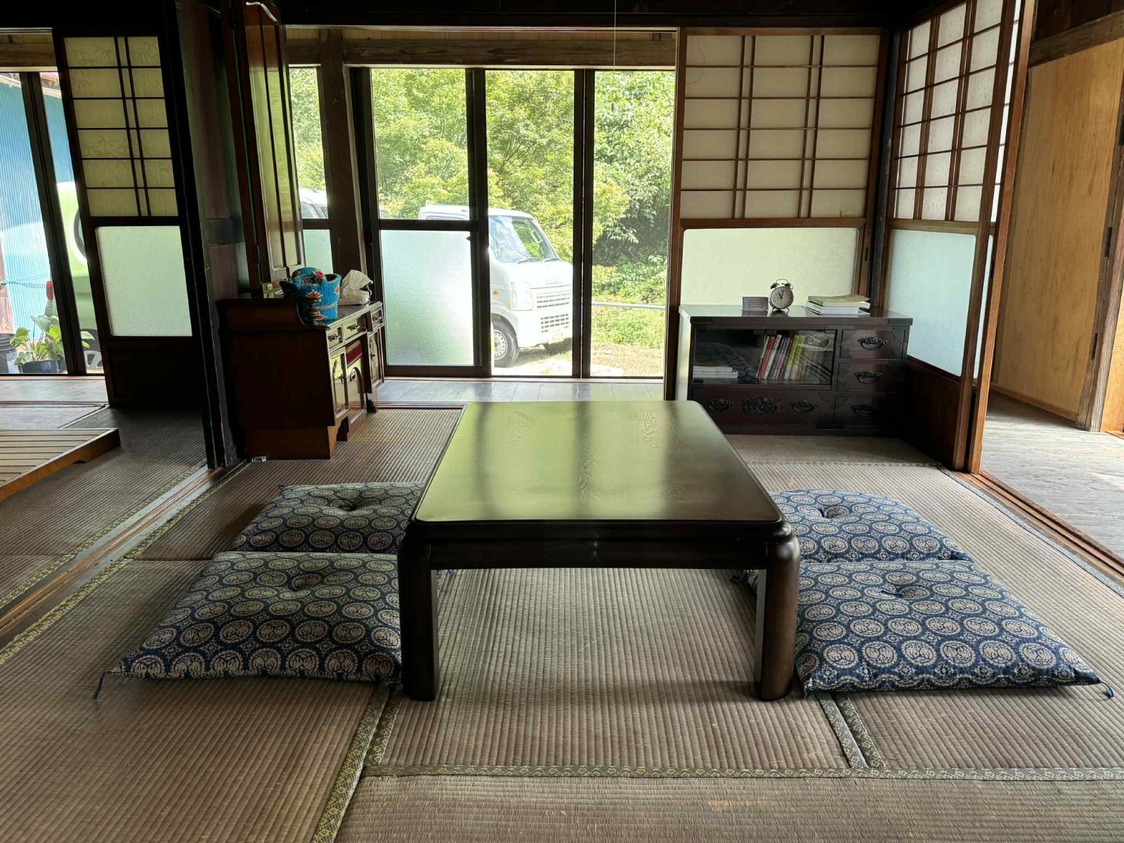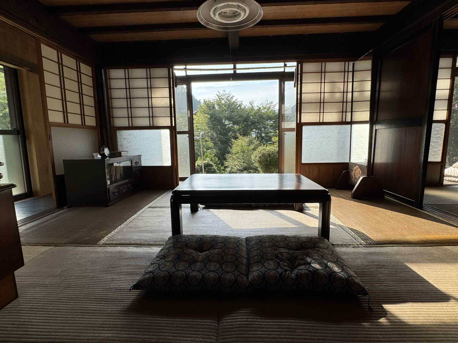・扇風機の音が聞こえる和室でのんびりと過ごすシーン。