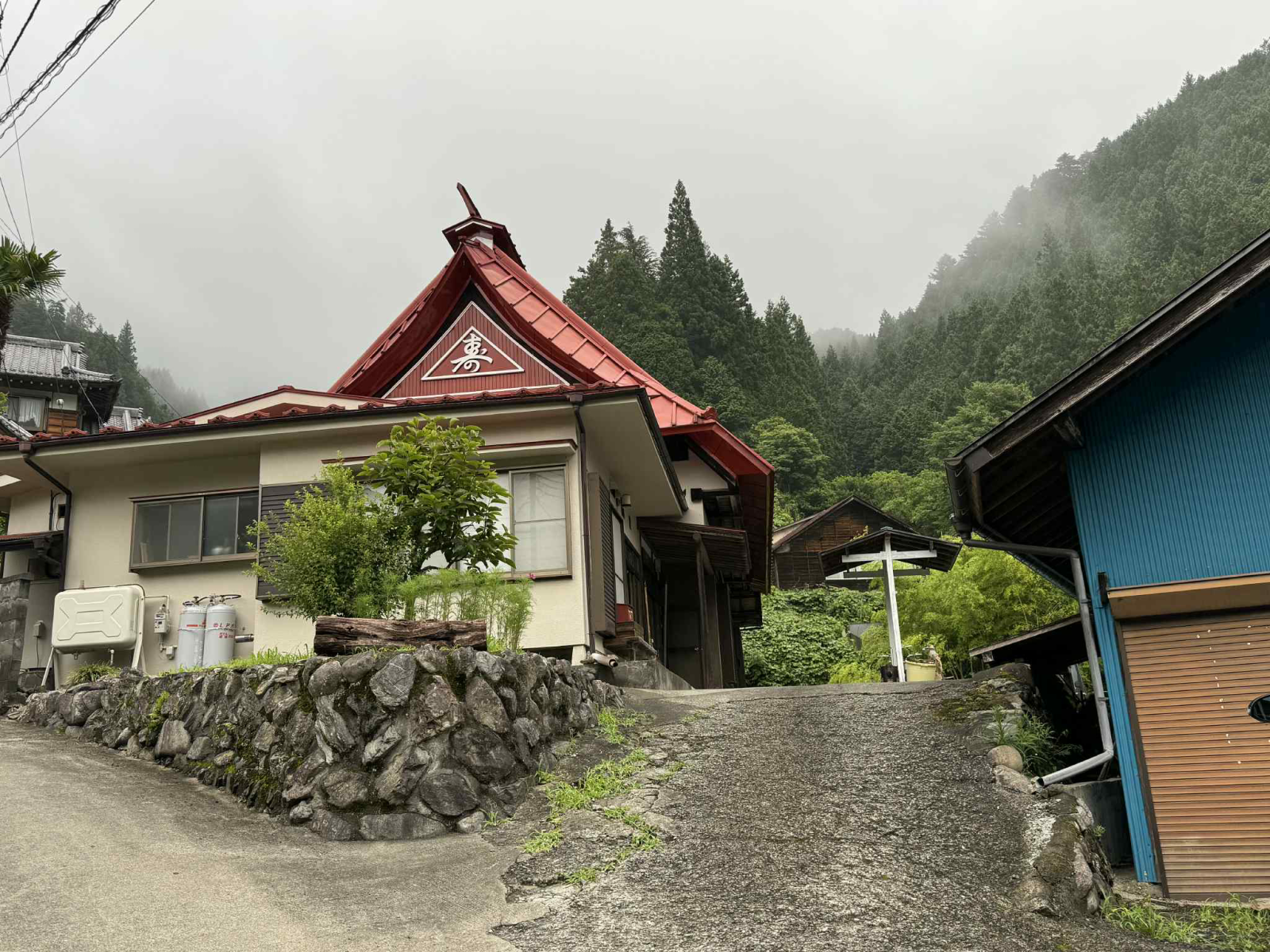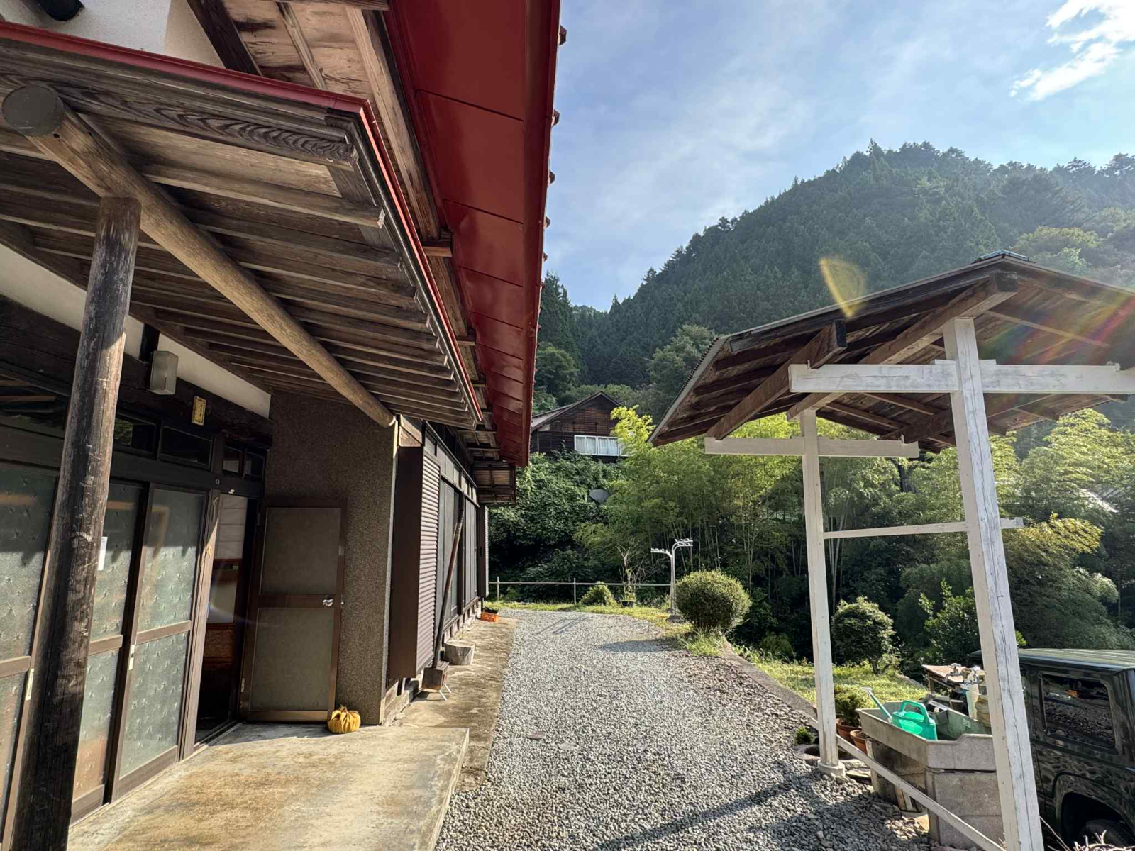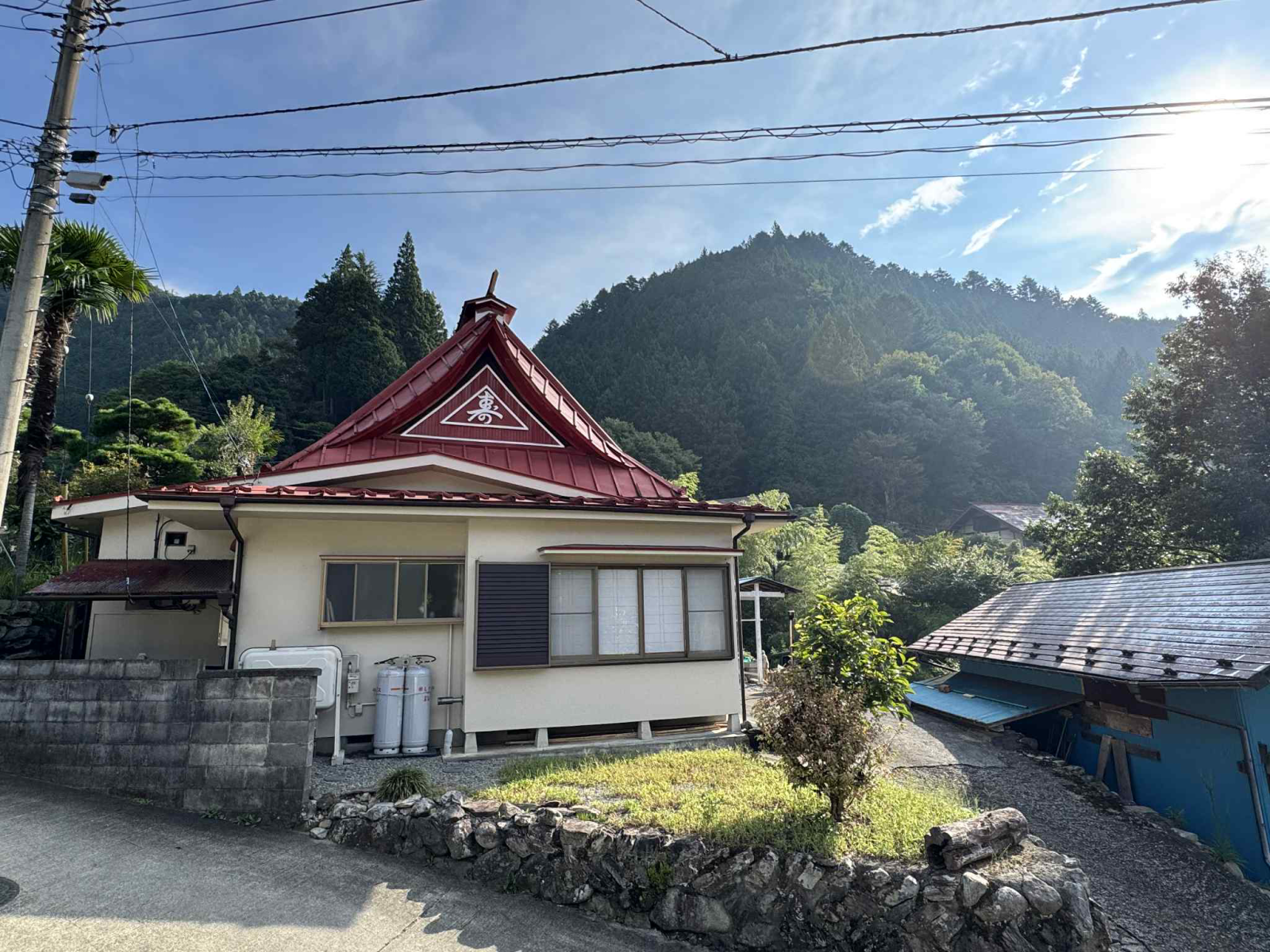 ・赤い三角屋根が印象的な古民家です。