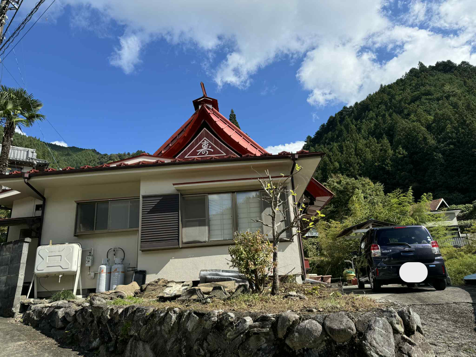 ・赤い三角屋根が印象的な古民家です。